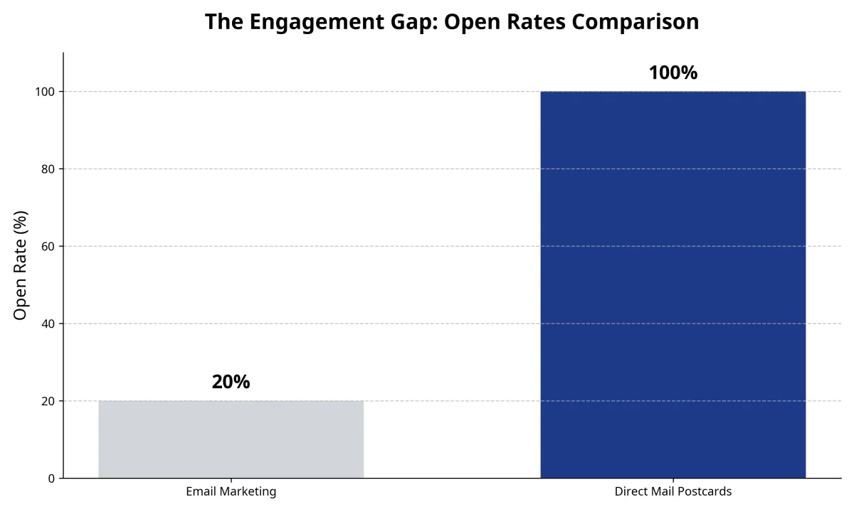 Imagine a marketing channel where every single message you send is opened, seen, and held in your customer's hands. That's the power of direct mail postcards.